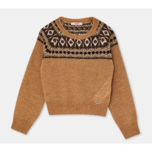 LIU JO Maglia jacquard marrone cammello misto alpaca MADE IN ITALY