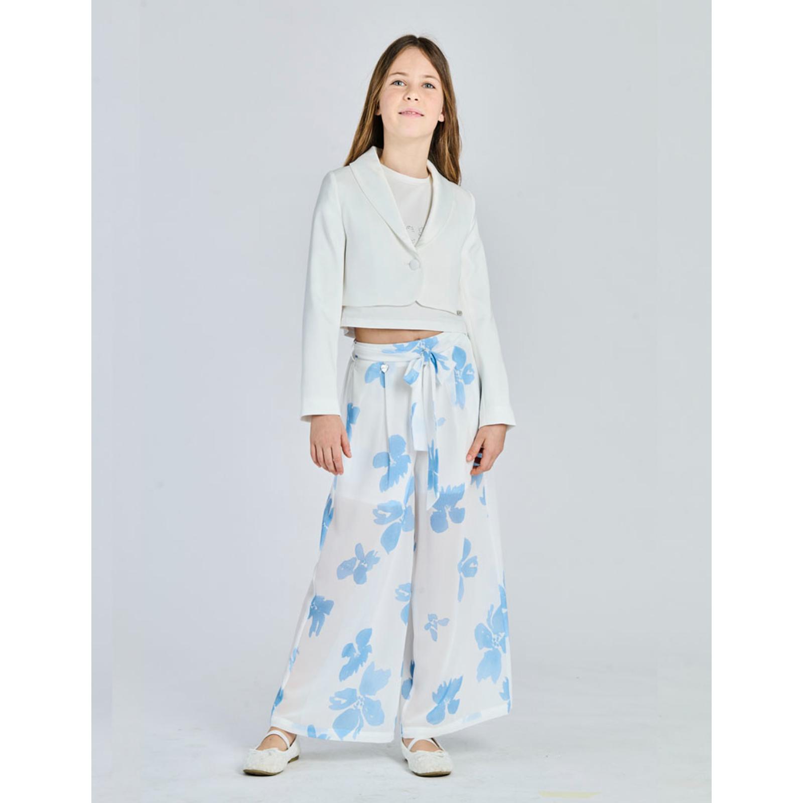 ALICE PI Pantalone bianco fiori azzurri largo con cintura
