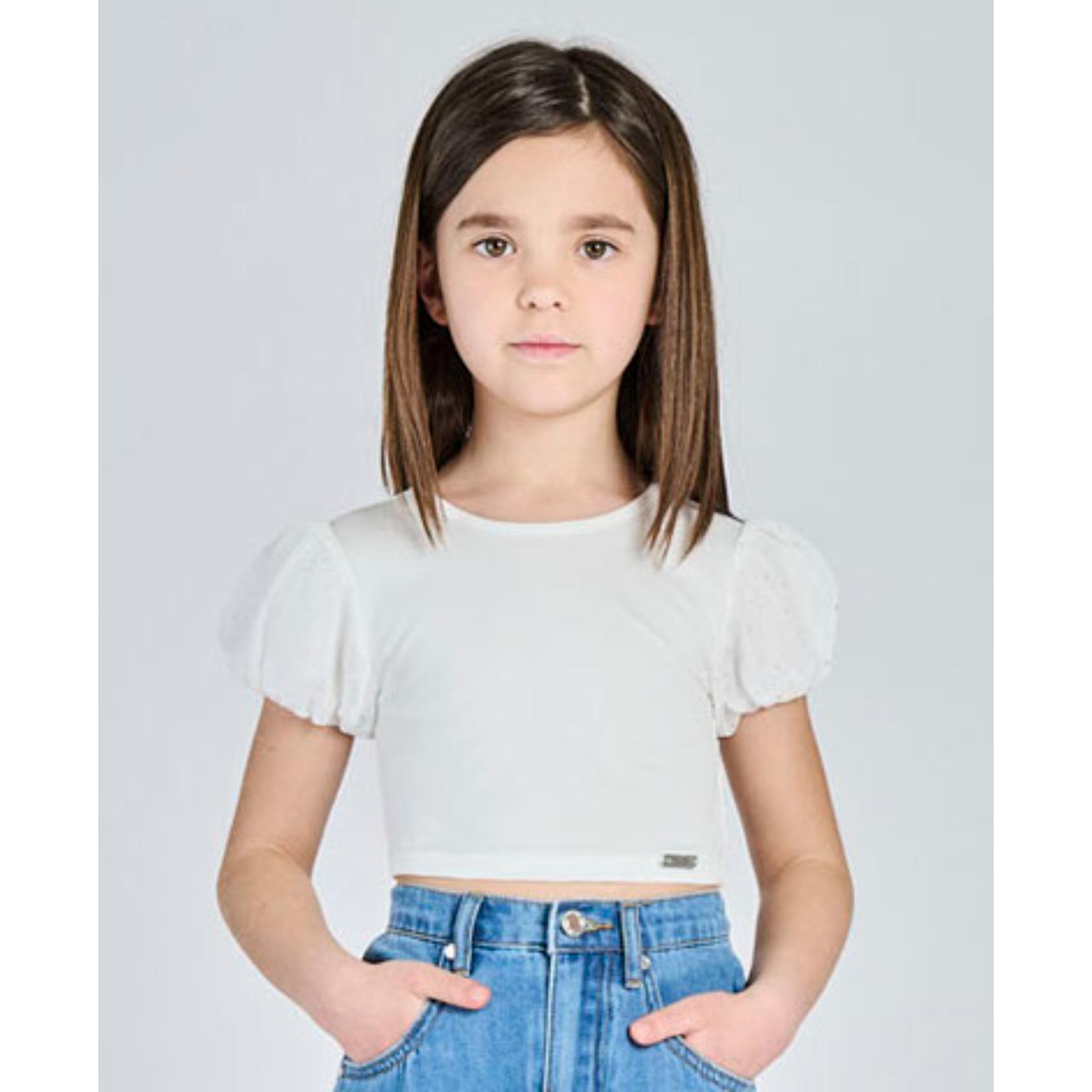 ALICE PI Top cropped bianco maniche a palloncino strass