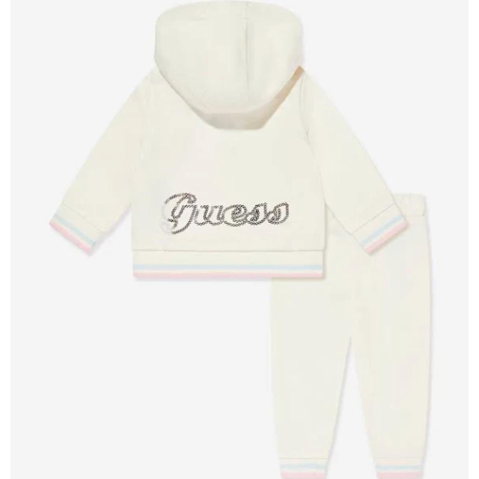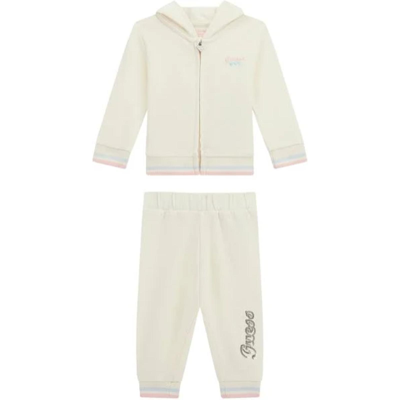 GUESS Set tuta panna felpa logo paillettes + pantalone cotone