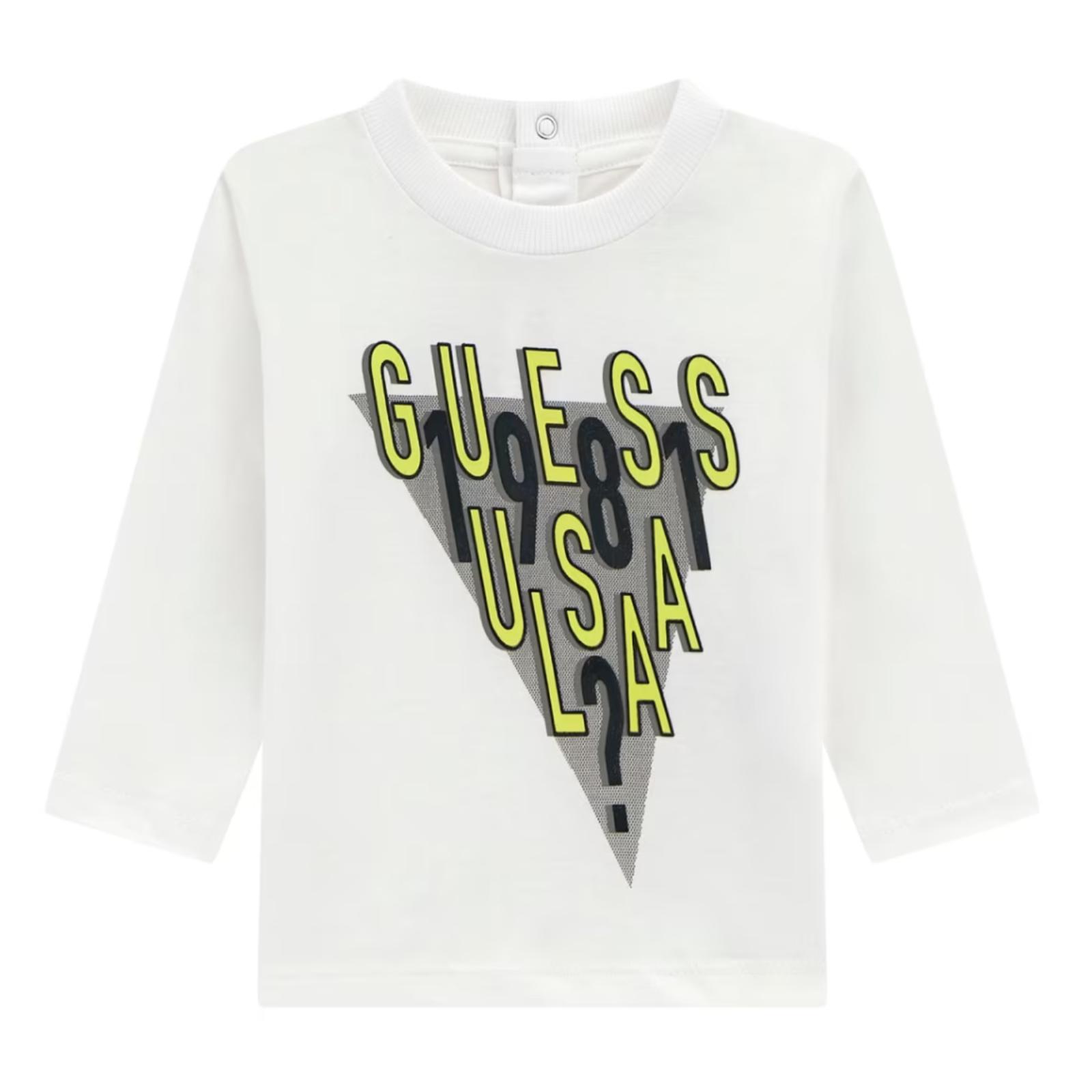 GUESS T-shirt bianca neonato bambino logo verde-nero