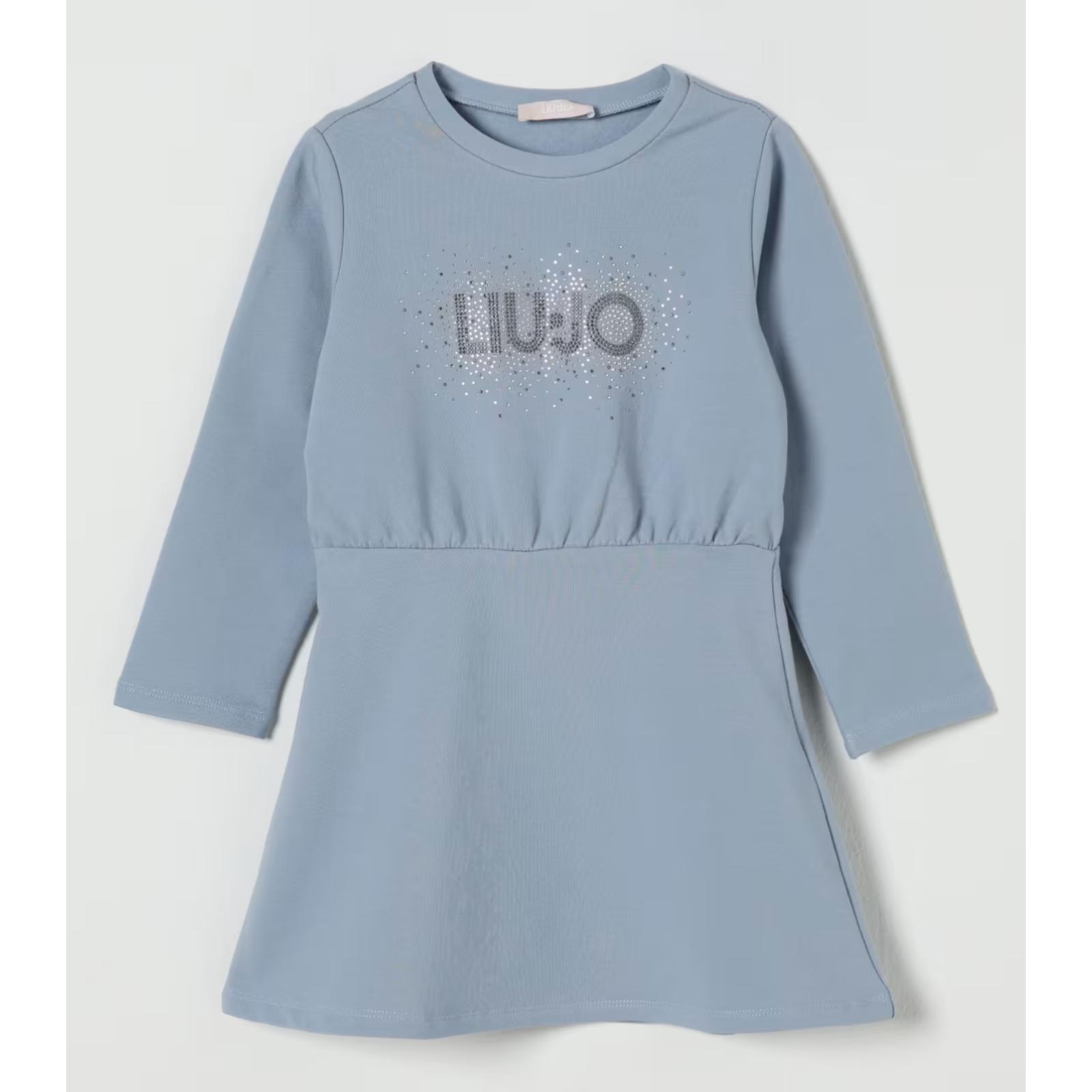 LIU JO Abito vestito in felpa di cotone azzurro strass