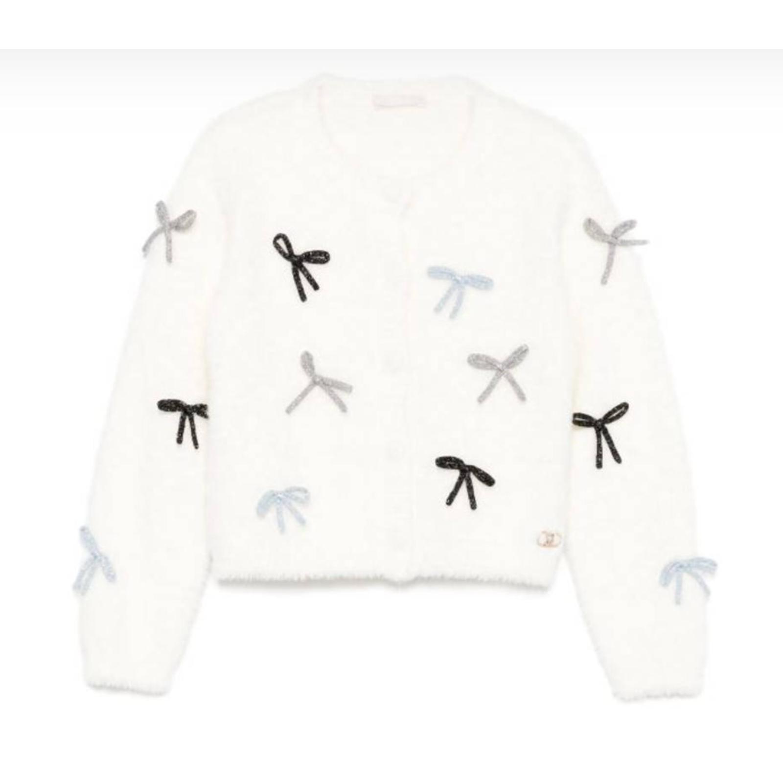 LIU JO Cardigan fur bambina panna con fiocchetti lurex