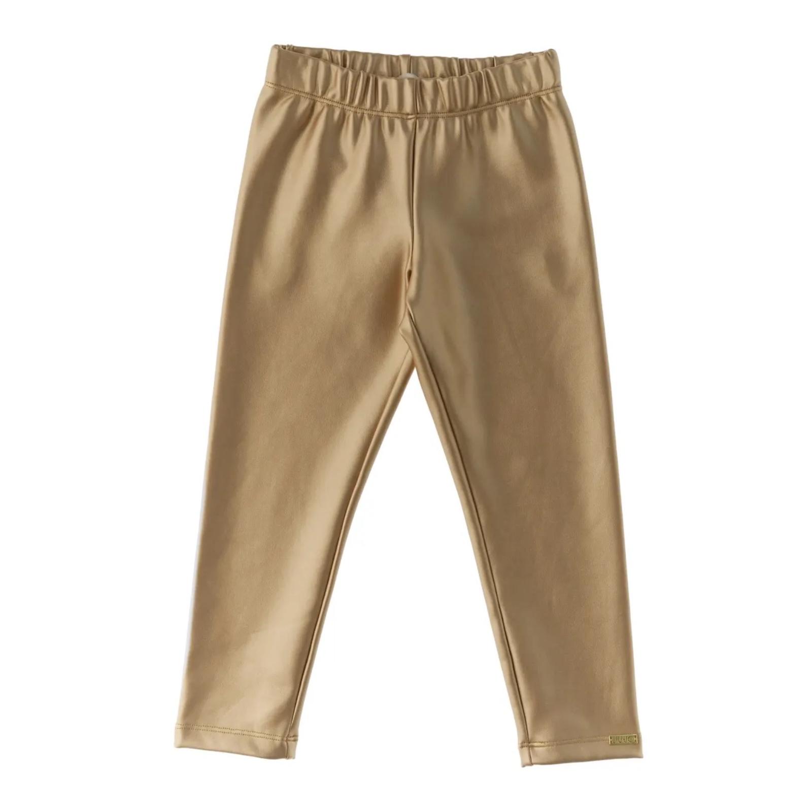 Leggings lunghi oro bambina felpa jersey stretch