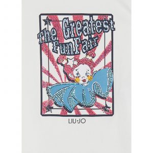 LIU JO T-shirt bianca stampa The Greatest FunFair con strass