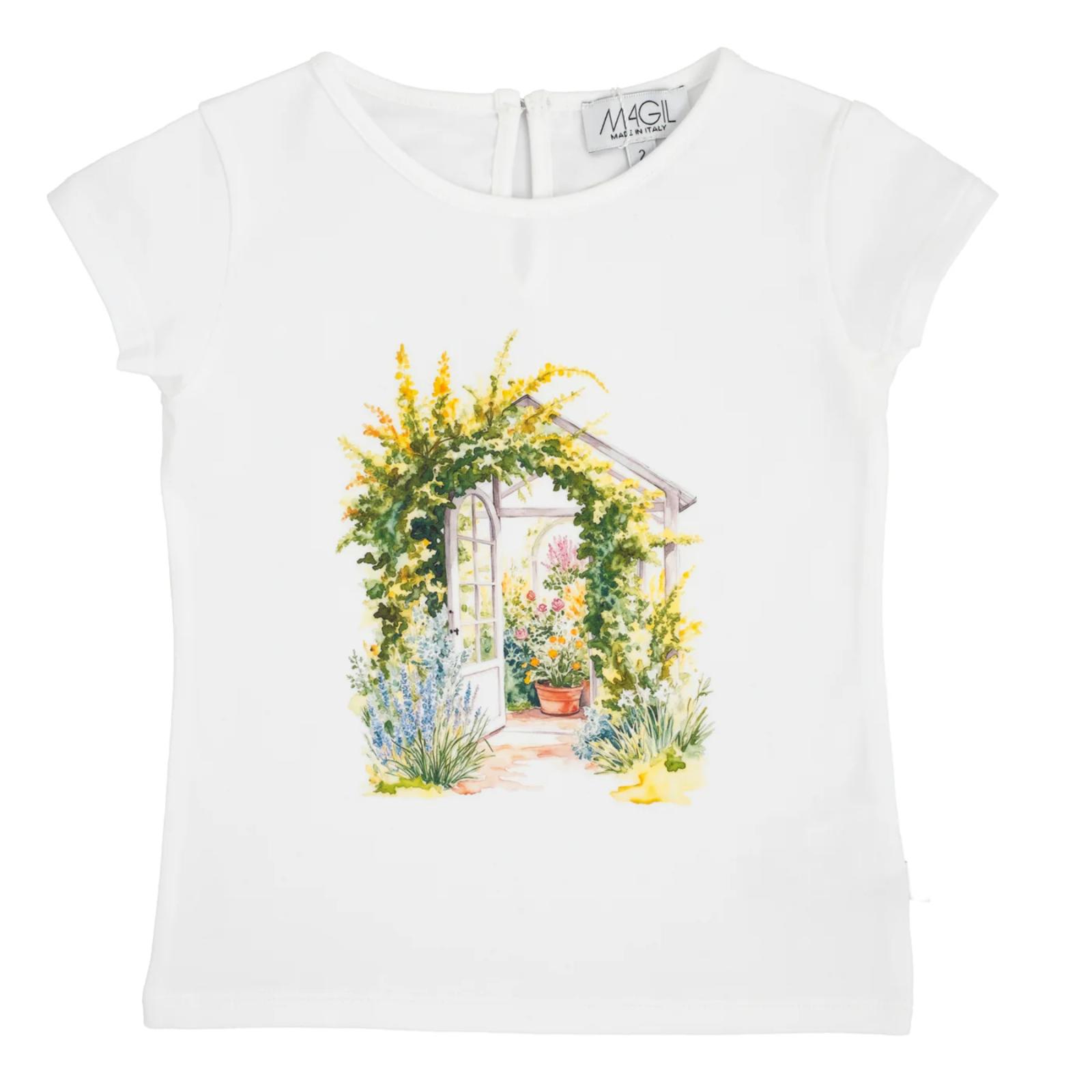MAGIL T-shirt bianca stampa serra con fiori cotone MADE IN ITALY