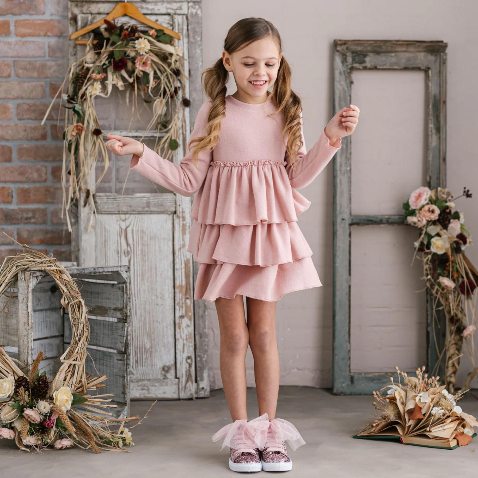 Abito bambina , in morbido tessuto di caldo cotone punto Milano