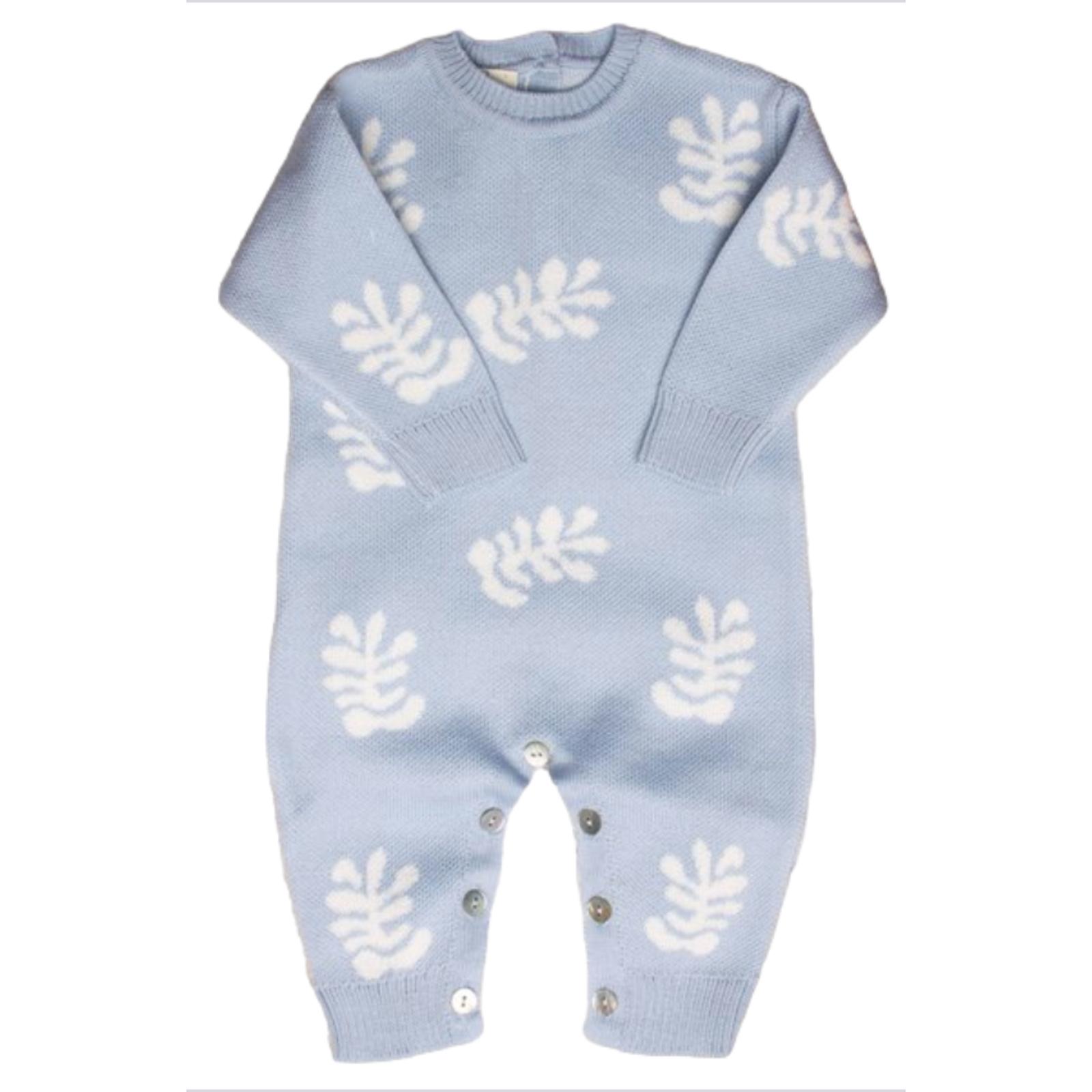 MAGLIFICIO DI VERONA Tutina neonato in maglia azzurra foglie MADE IN ITALY