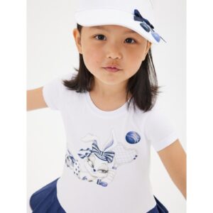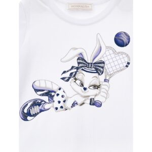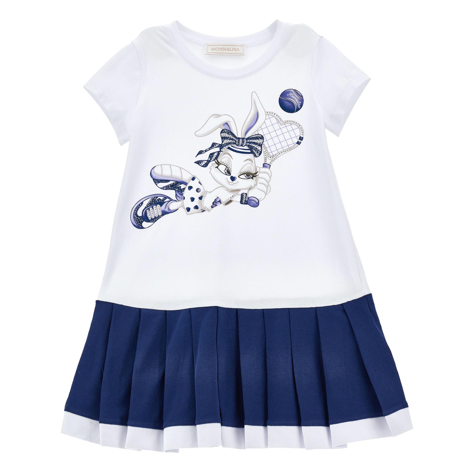 MONNALISA Abito conglietta tennis bianco e blu in jersey di cotone